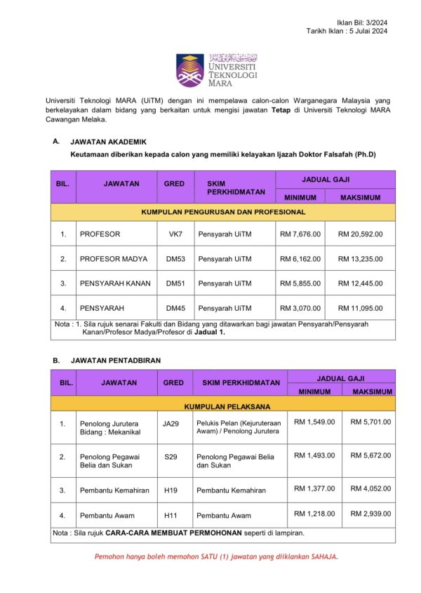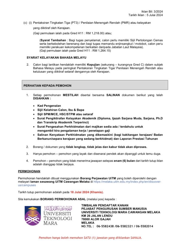 Iklan Jawatan Kosong Universiti Teknologi Mara (UiTM) Melaka