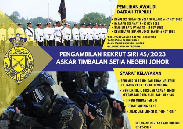 Iklan Jawatan Askar Timbalan Setia Negeri Johor