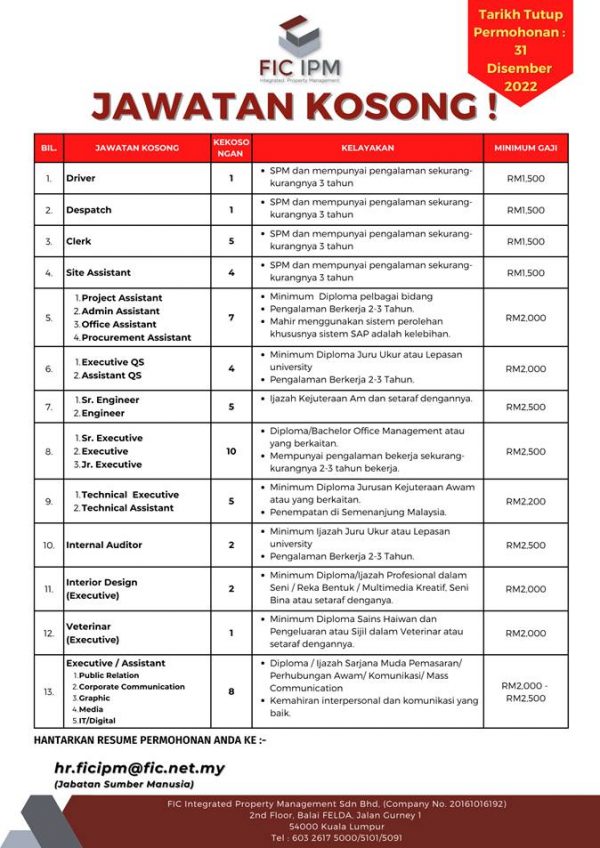 Iklan Jawatan FIC Integrated Property Management