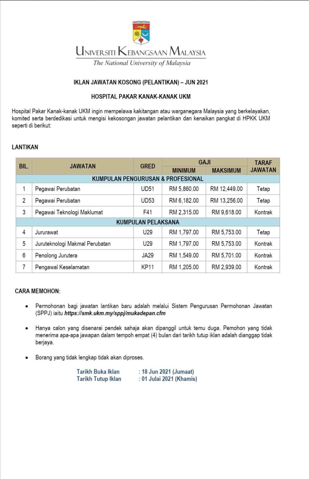 Iklan Jawatan Hospital Pakar Kanak-kanak UKM (HPKK UKM)