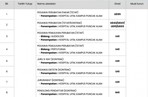Iklan Jawatan Hospital UiTM (HUiTM)
