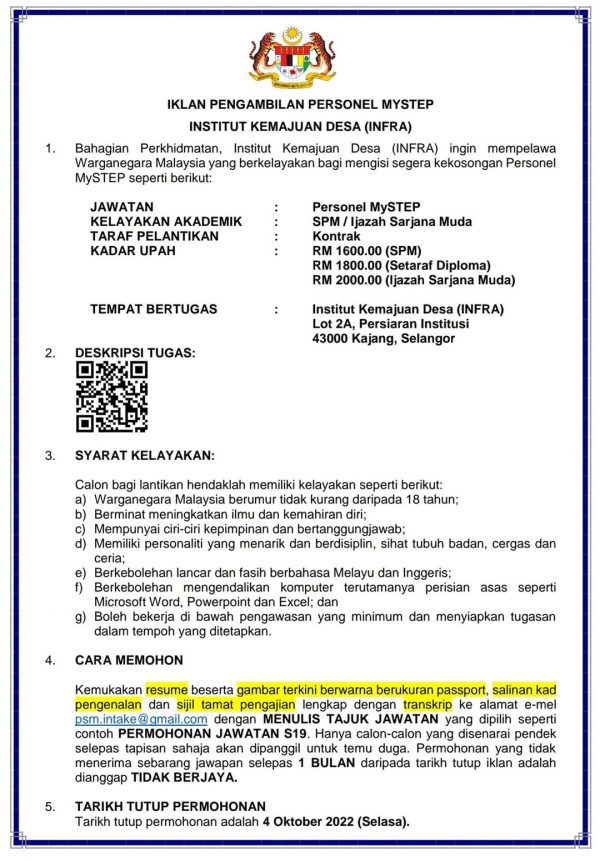 Iklan Jawatan Institut Kemajuan Desa (INFRA)