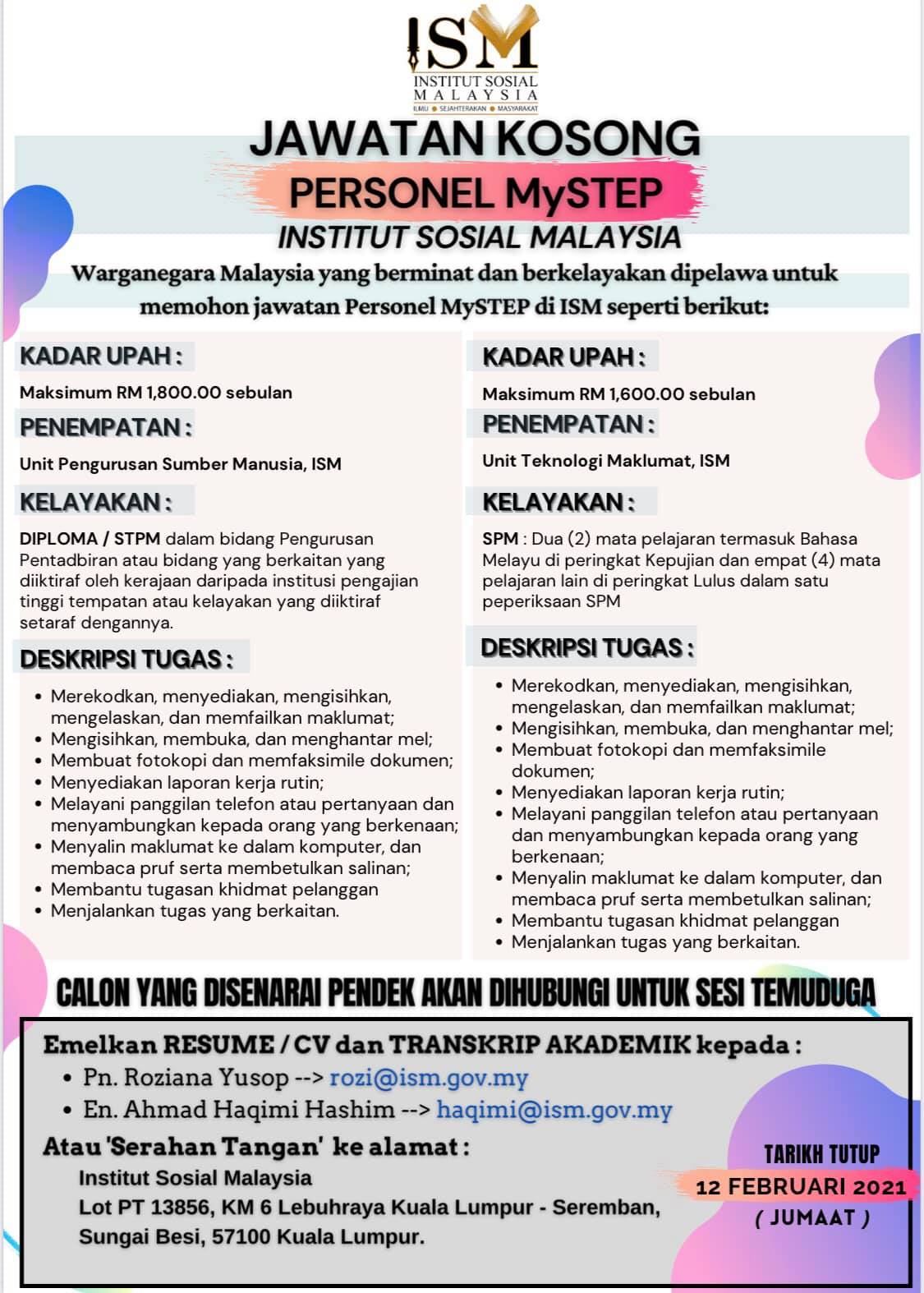 Iklan Jawatan Institut Sosial Malaysia (ISM)