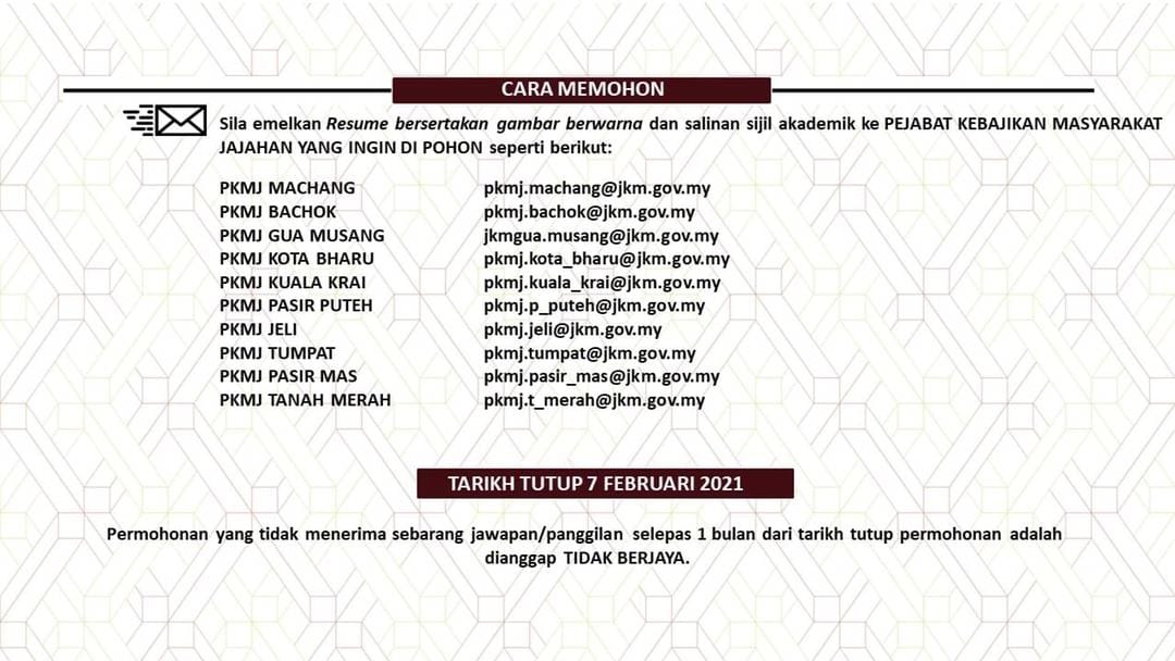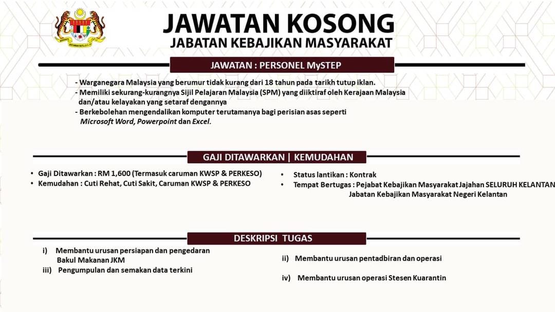 Iklan Jawatan Jabatan Kebajikan Masyarakat Negeri Kenlatan