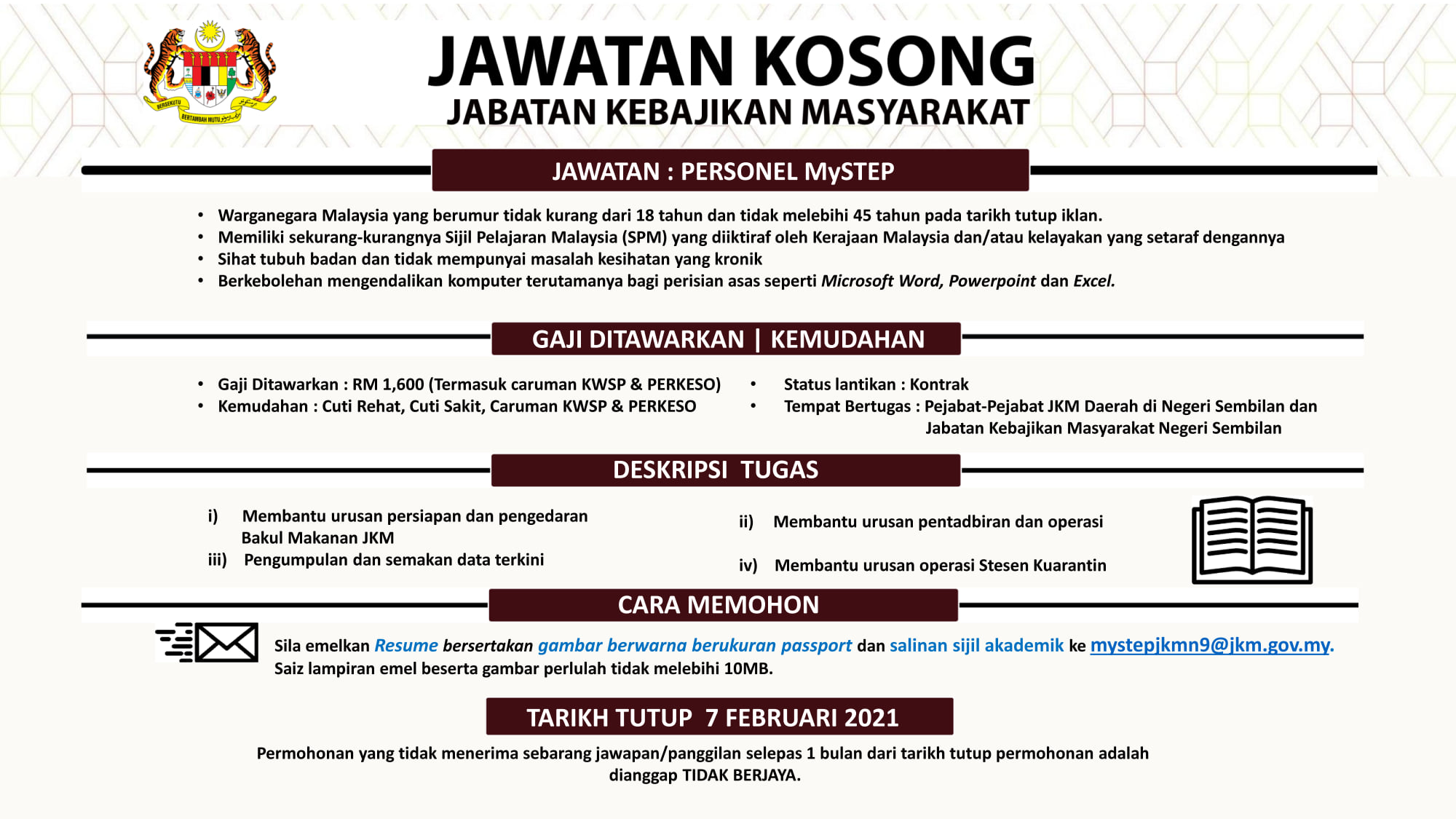 Iklan Jawatan Jabatan Kebajikan Masyarakat Negeri Sembilan