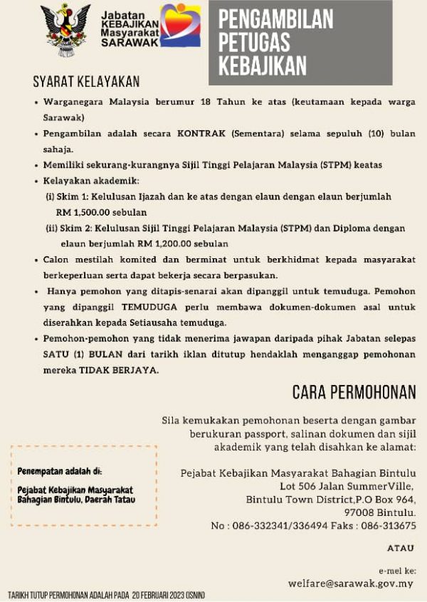 Iklan Jawatan Jabatan Kebajikan Masyarakat