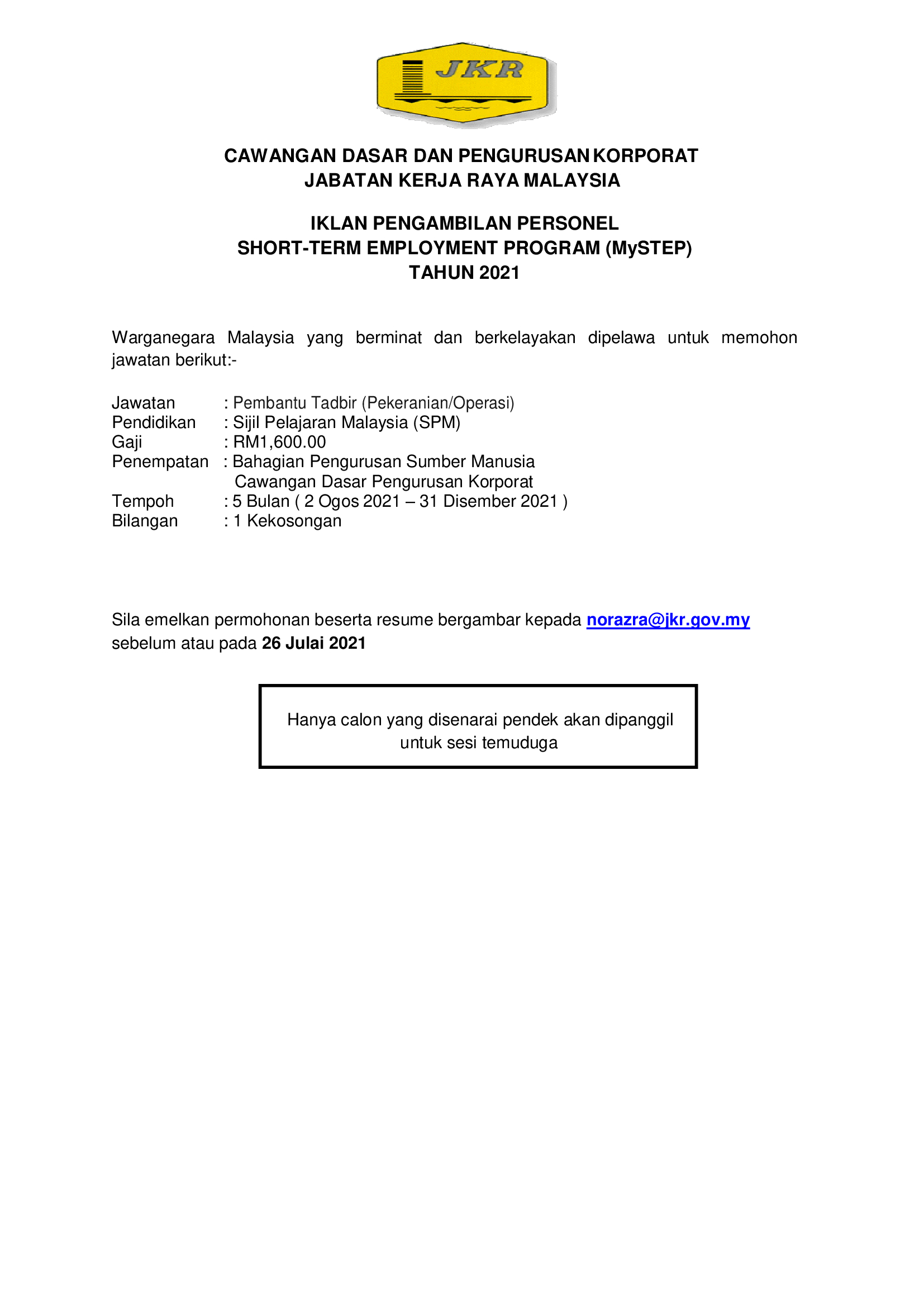Iklan Jawatan Jabatan Kerja Raya Malaysia