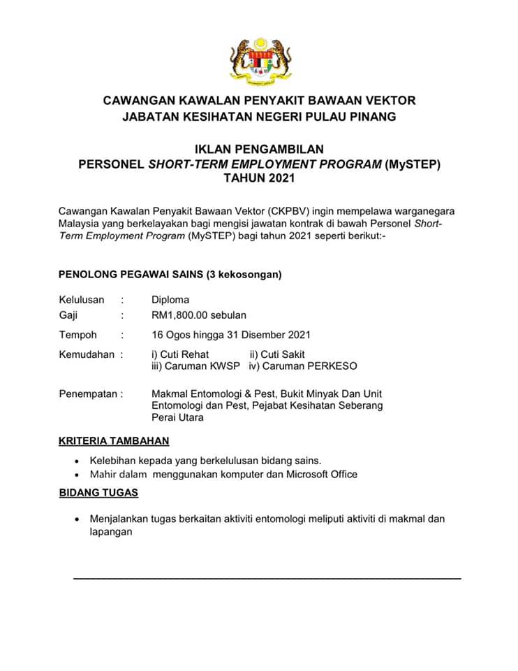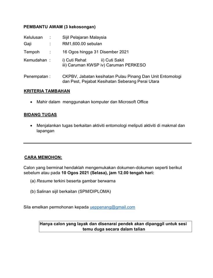 Iklan Jawatan Jabatan Kesihatan Negeri Pulau Pinang