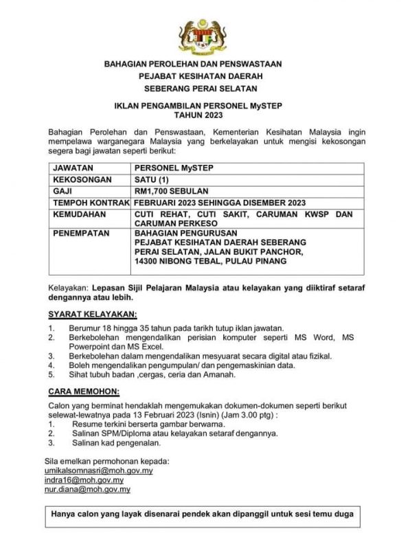 Iklan Jawatan Jabatan Kesihatan Negeri Pulau Pinang