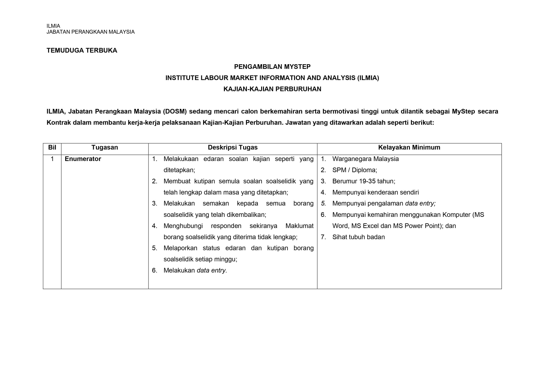Iklan Jawatan Jabatan Perdana Menteri (JPM)