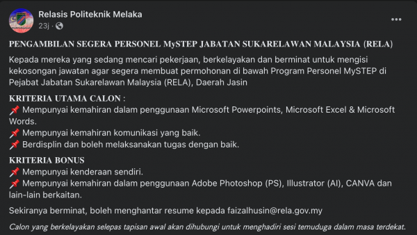 Iklan Jawatan Jabatan Sukarelawan Malaysia (RELA)