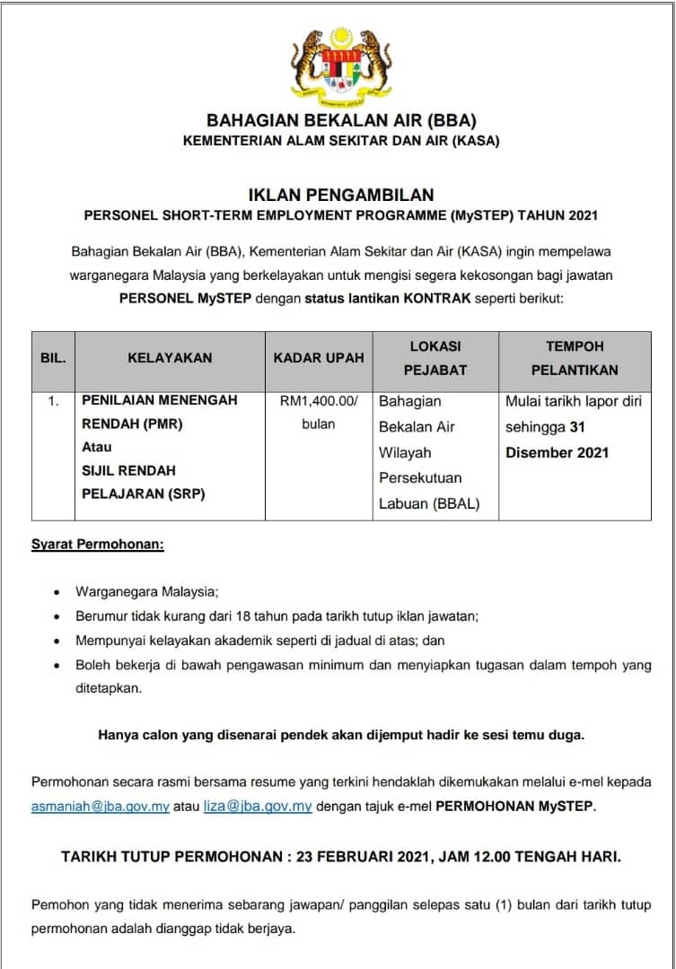 Iklan Jawatan Kementerian Alam Sekitar dan Air