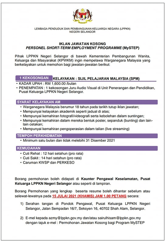 Iklan Jawatan Kementerian Pembangunan Wanita, Keluarga & Masyarakat (KPWKM)
