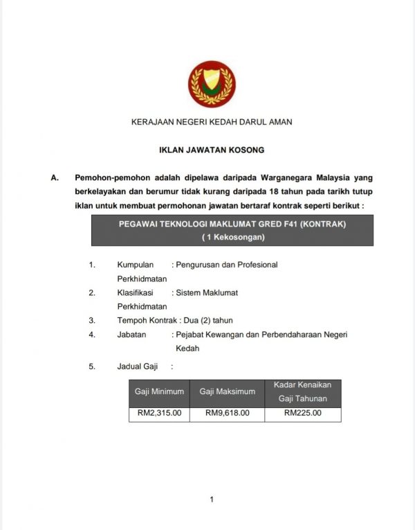 Iklan Jawatan Kerajaan Negeri Kedah