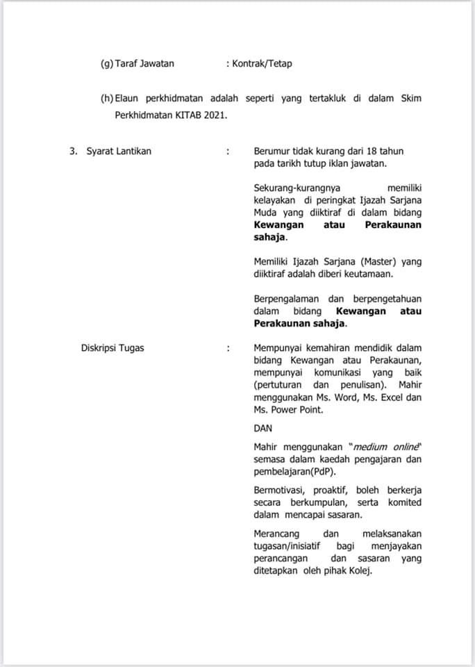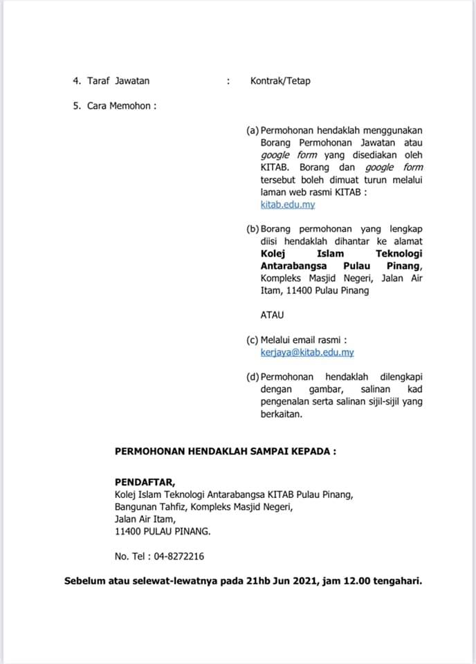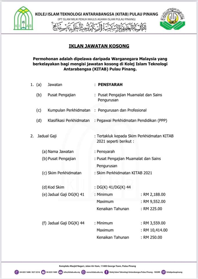 Iklan Jawatan Kolej Islam Teknologi Antarabangsa Pulau Pinang