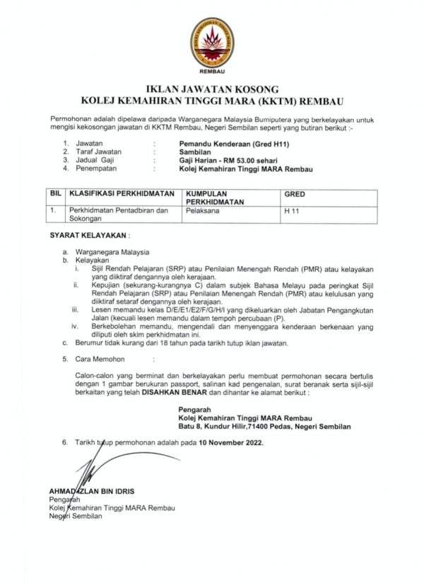 Iklan Jawatan Kolej Kemahiran Tinggi MARA
