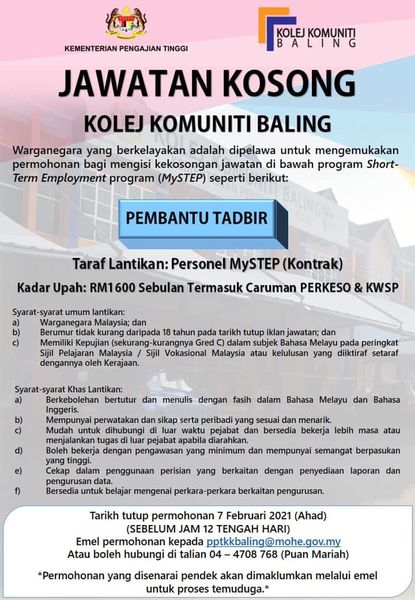 Iklan Jawatan Kolej Komuniti Baling