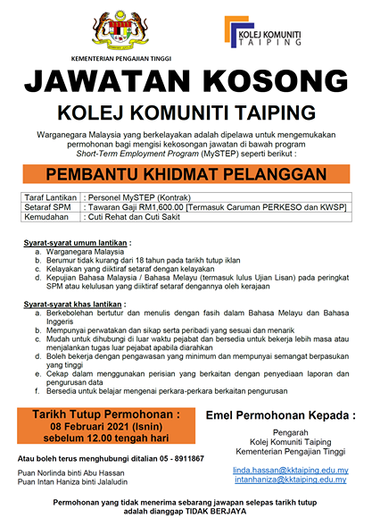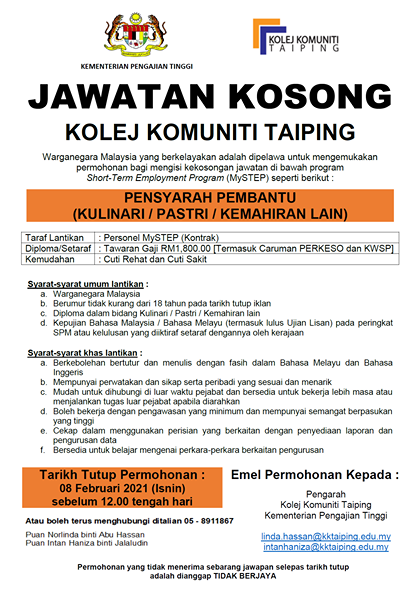 Iklan Jawatan Kolej Komuniti Taiping