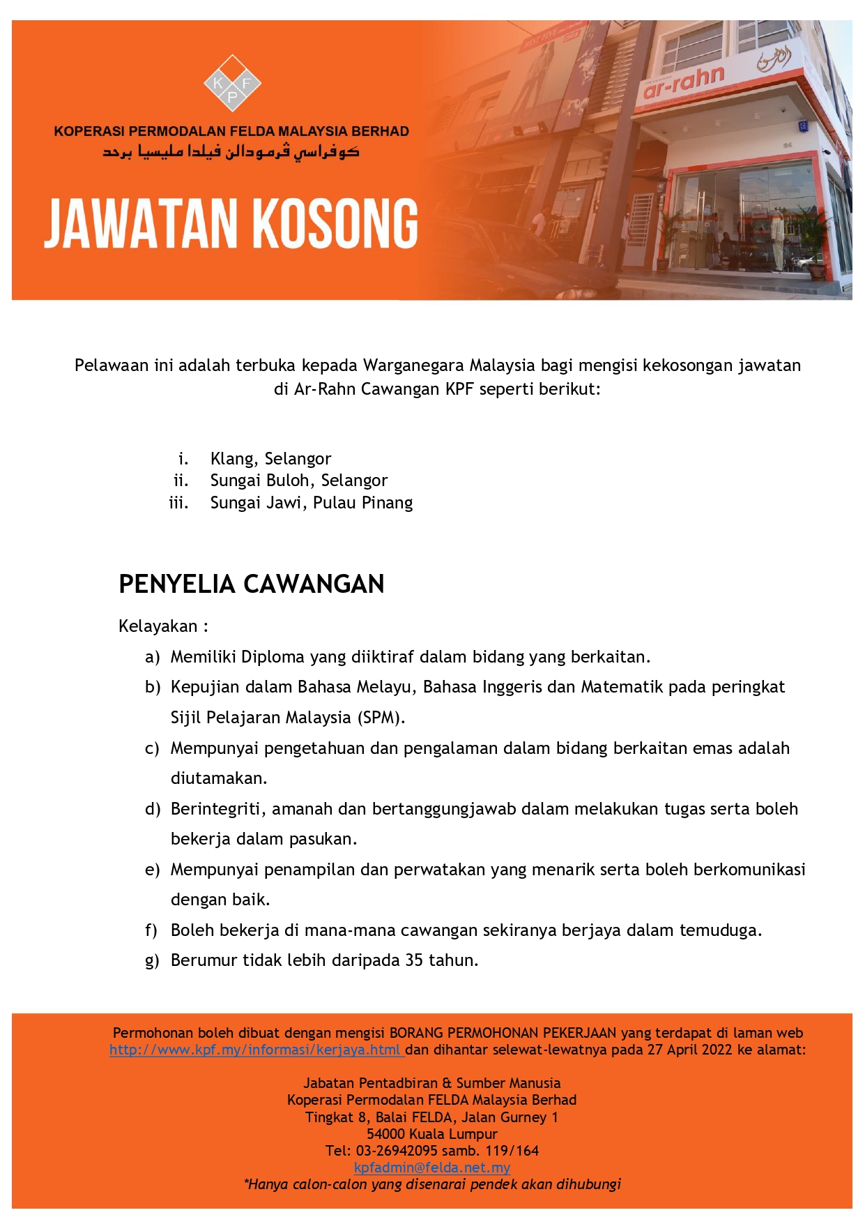 Iklan Jawatan Koperasi Permodalan Felda Malaysia Berhad (KPF)