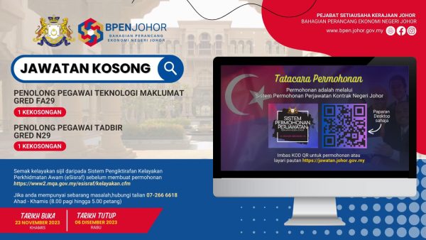 Iklan Jawatan Kosong Bahagian Perancang Ekonomi Negeri Johor