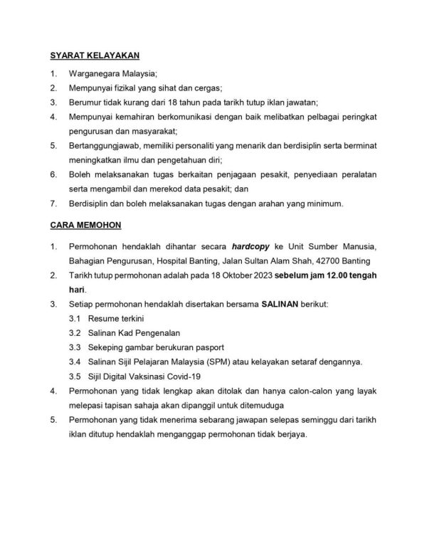 Iklan Jawatan Kosong Hospital Banting