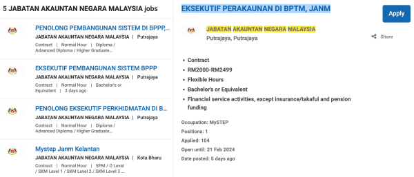 • Setelah mendaftar, anda boleh terus login dan mencari bidang kerjaya yang diinginkan mengikut lokasi yang ditawarkan