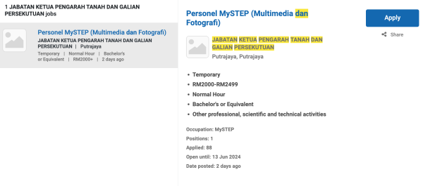 - Setelah mendaftar, anda boleh terus login dan mencari bidang kerjaya yang diinginkan mengikut lokasi yang ditawarkan