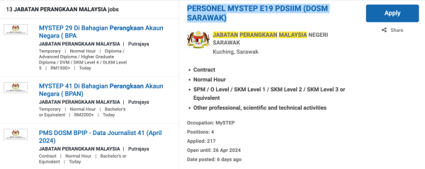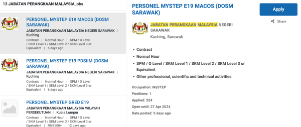 - Setelah mendaftar, anda boleh terus login dan mencari bidang kerjaya yang diinginkan mengikut lokasi yang ditawarkan