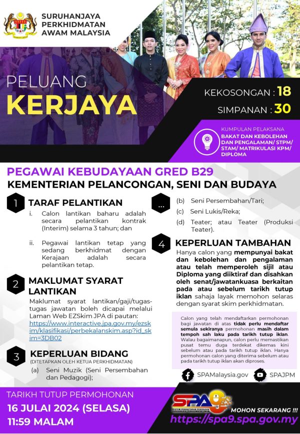 Iklan Jawatan Kosong Kementerian Pelancongan, Seni dan Budaya