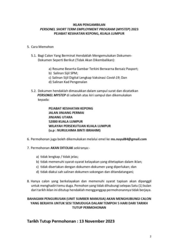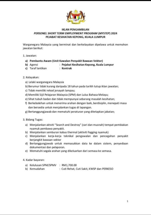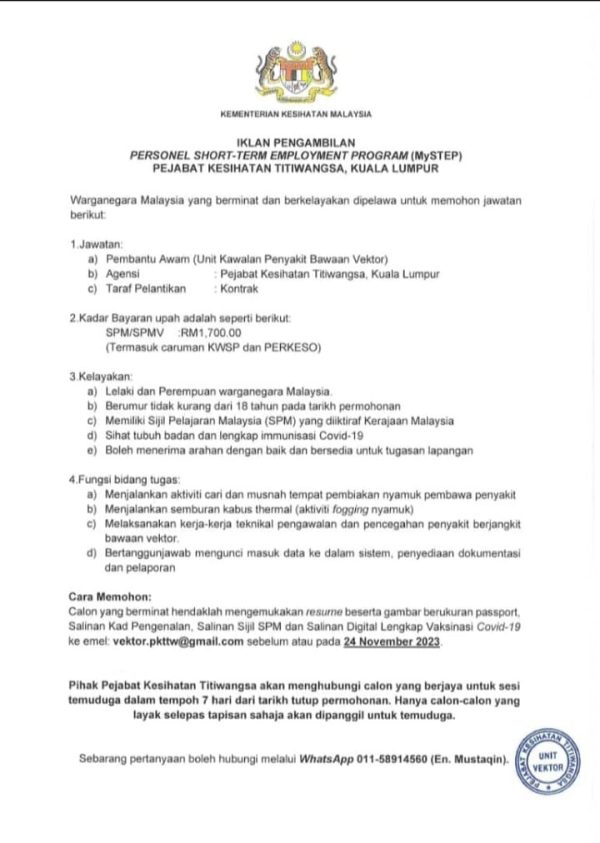 Iklan Jawatan Kosong Kementerian Kesihatan Malaysia (KKM)