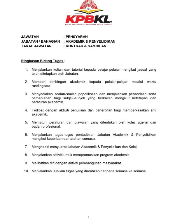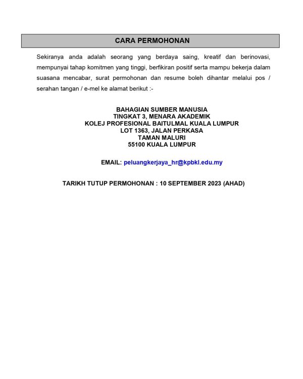 Iklan Jawatan Kosong Kolej Profesional Baitulmal