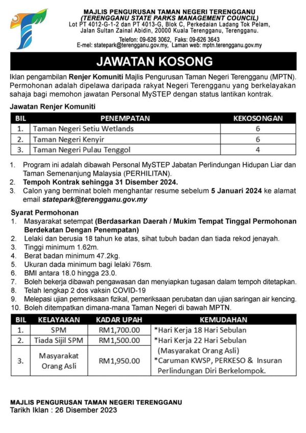 Iklan Jawatan Kosong Majlis Pengurusan Taman Negeri Terengganu