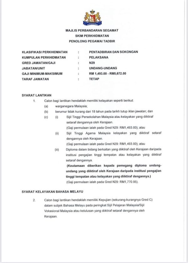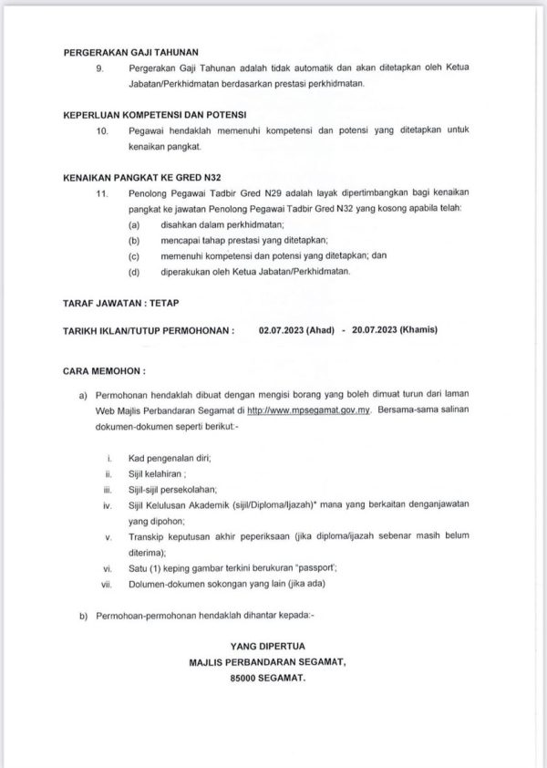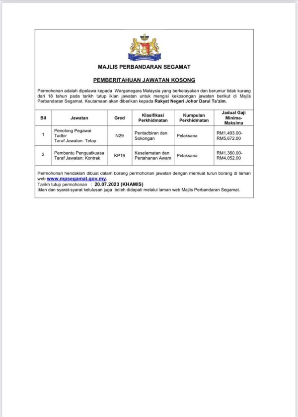 Iklan Jawatan Kosong Majlis Perbandaran Segamat