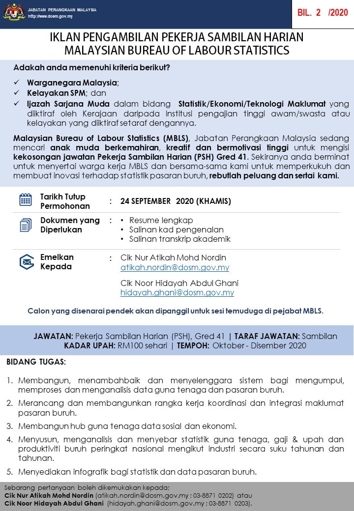 IKlan Jawatan Kosong Malaysian Bureau Of Labour Statistics
