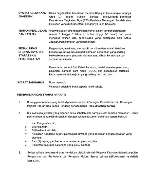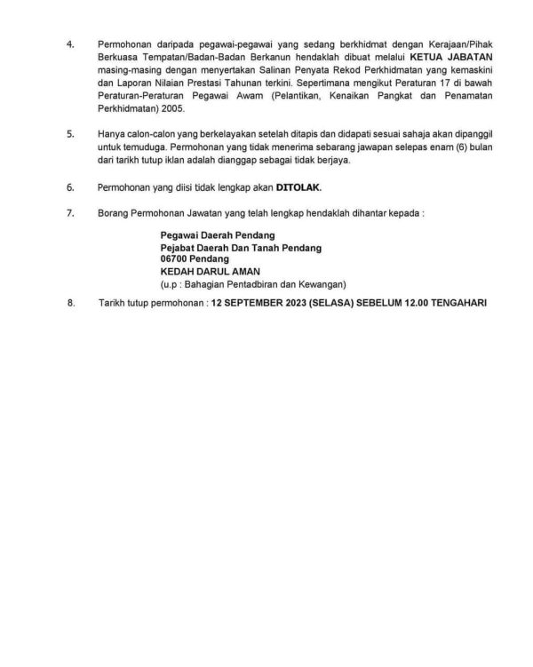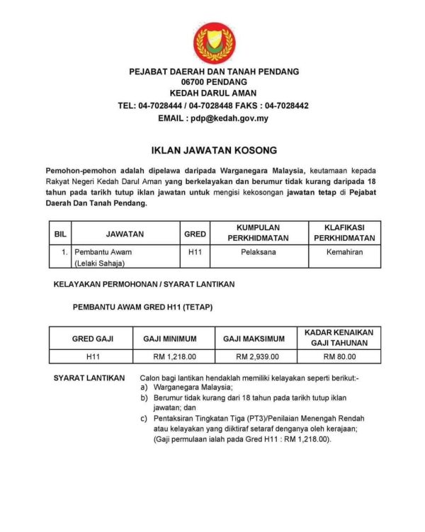 Iklan Jawatan Kosong Pejabat Daerah Dan Tanah Pendang
