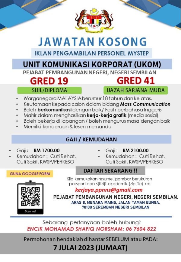 Iklan Jawatan Kosong Pejabat Pembangunan Negeri, Negeri Sembilan (ICU JPM)