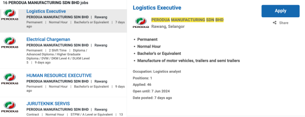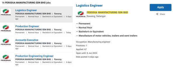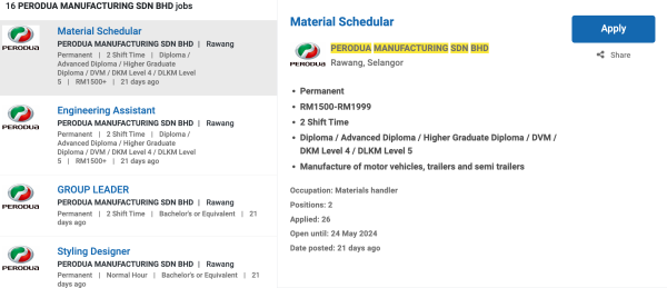 Iklan Jawatan Kosong PERODUA MANUFACTURING SDN BHD