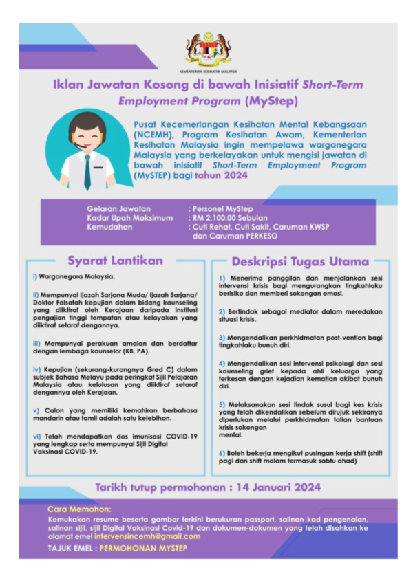Iklan Jawatan Kosong Pusat Kecemerlangan Kesihatan Mental Kebangsaan (NCEMH)
