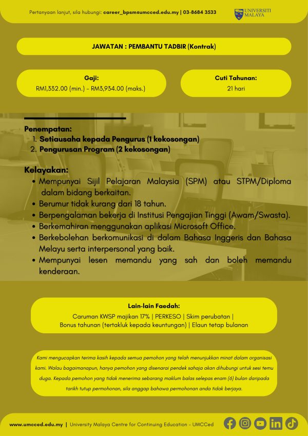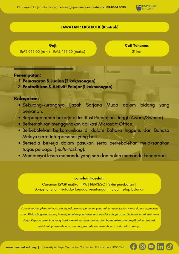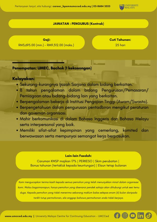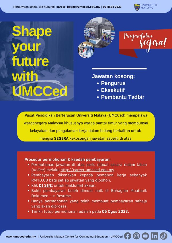 Iklan Jawatan Kosong Pusat Pendidikan Berterusan Universiti Malaya (UMCCeD)