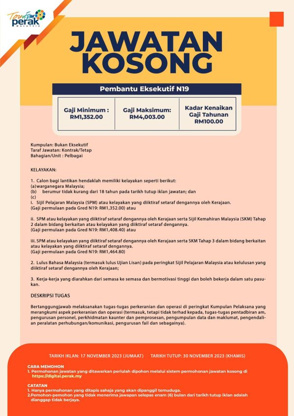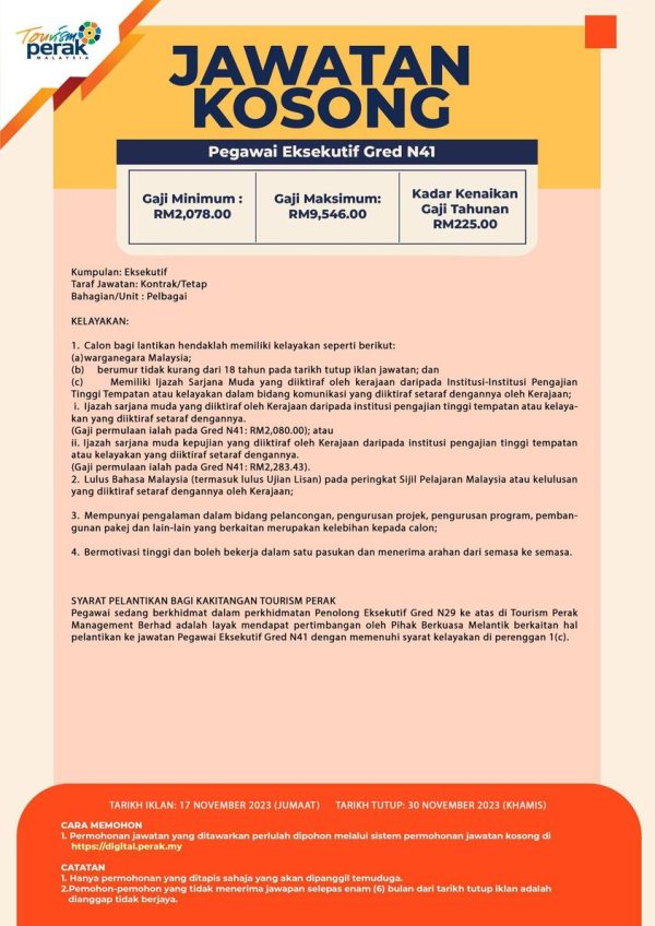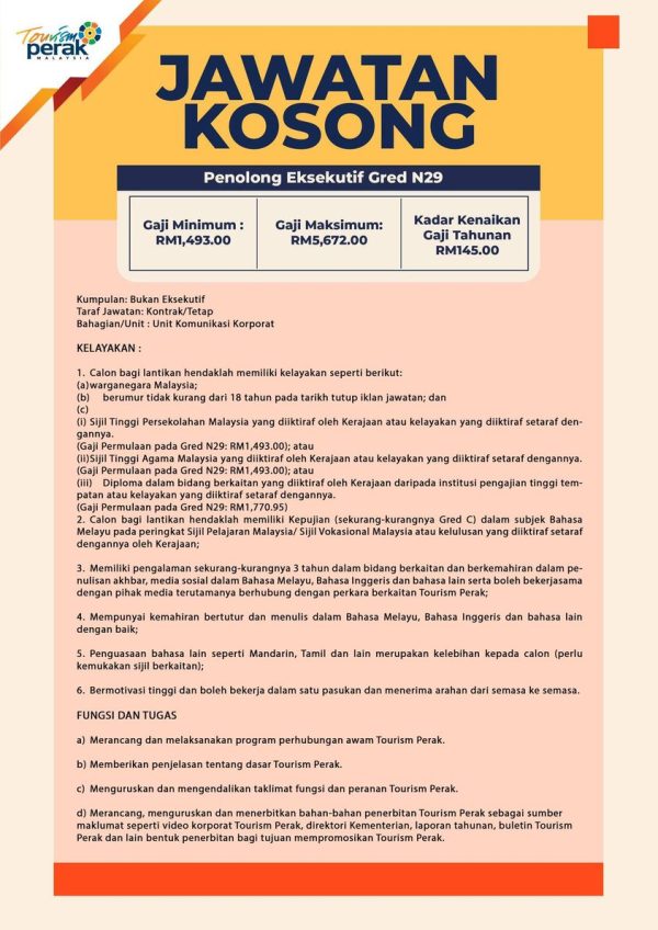 Iklan Jawatan Kosong Tourism Perak Malaysia