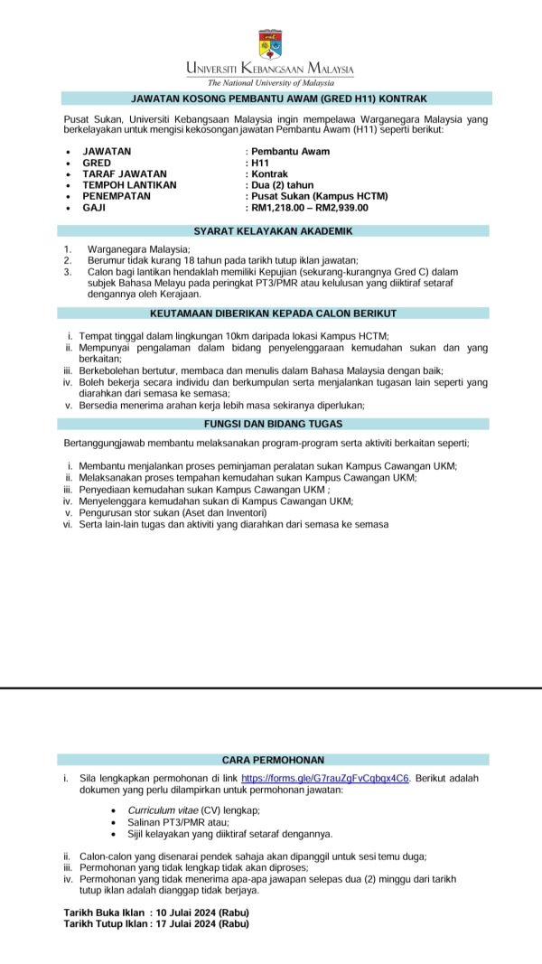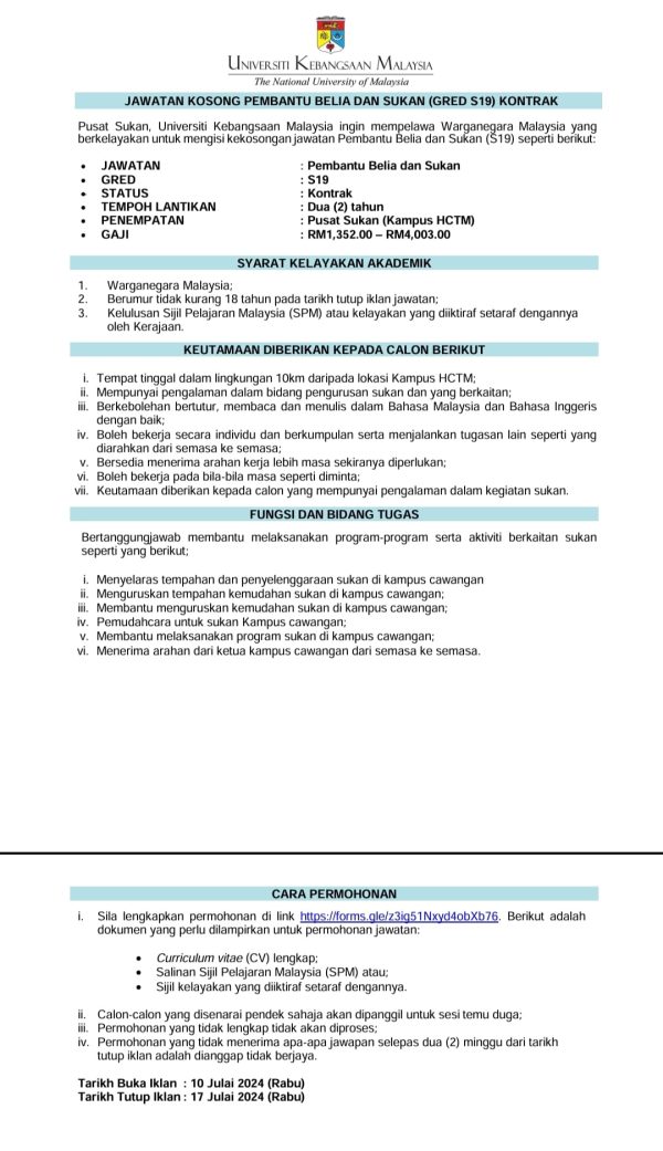 Iklan Jawatan Kosong Universiti Kebangsaan Malaysia (UKM)