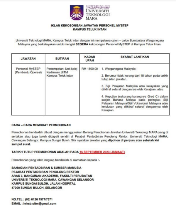 Iklan Jawatan Kosong Universiti Teknologi Mara (UiTM) Teluk Intan