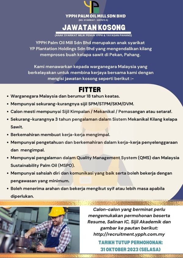 Iklan Jawatan Kosong YP Plantation Holdings Sdn. Bhd.