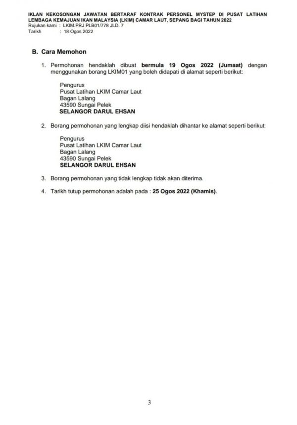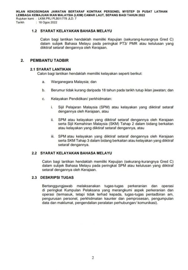 Iklan Jawatan Lembaga Kemajuan Ikan Malaysia (LKIM)