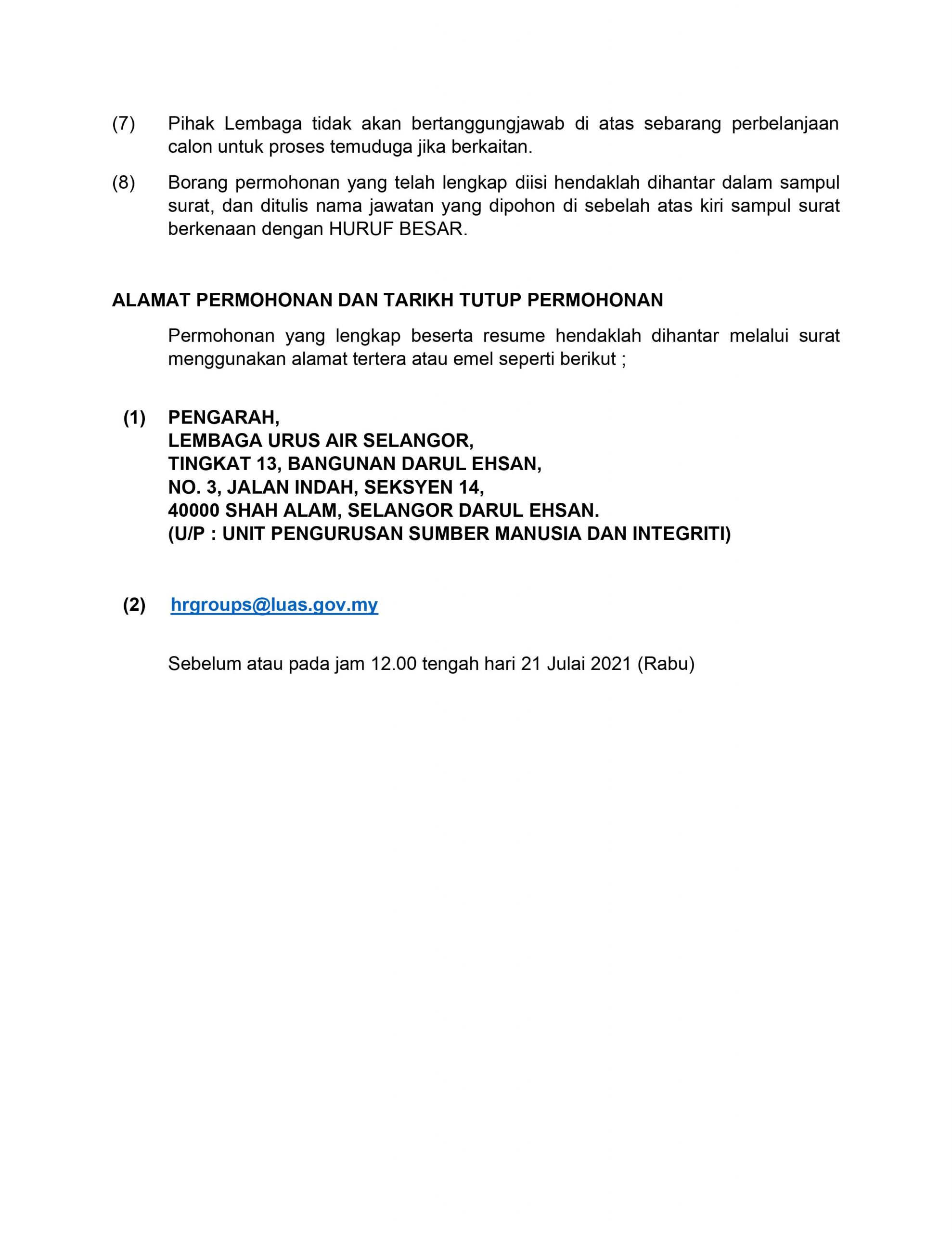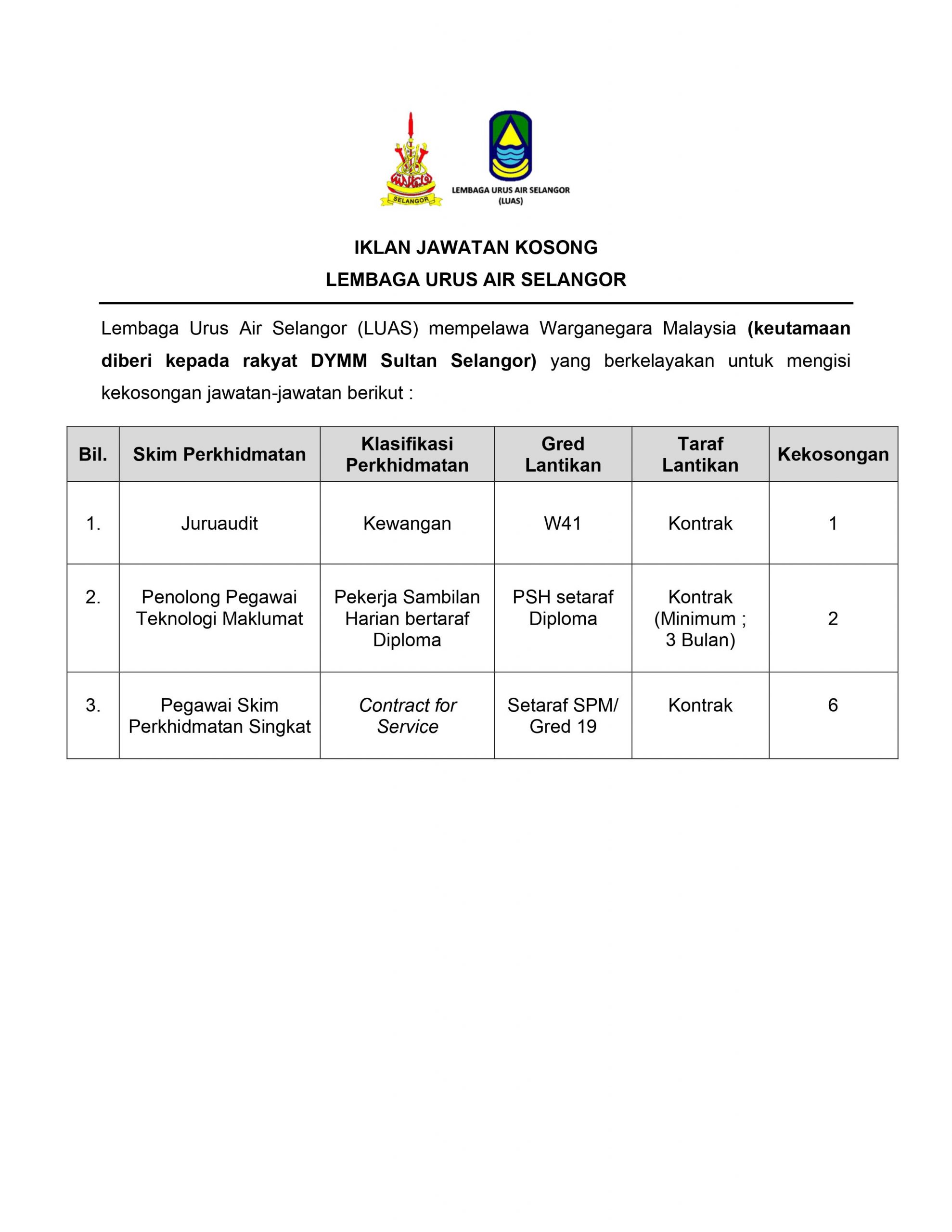 Iklan Jawatan Lembaga Urus Air Selangor (LUAS)