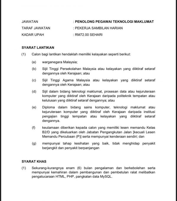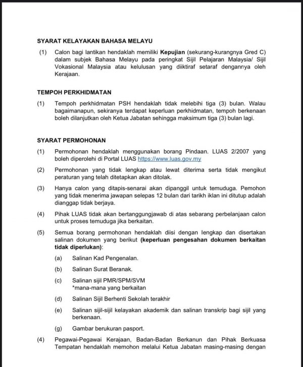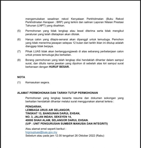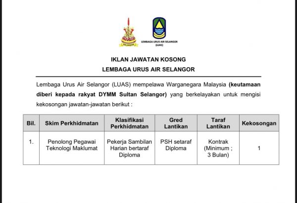 Iklan Jawatan Lembaga Urus Air Selangor (LUAS)