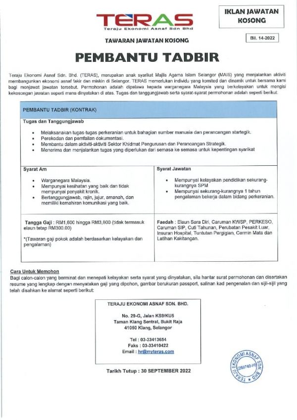 Iklan Jawatan Majlis Agama Islam (MAIS)