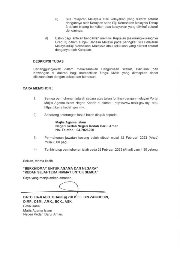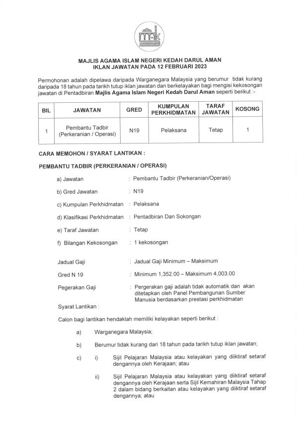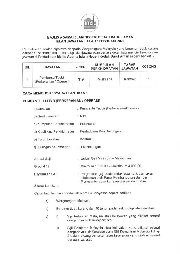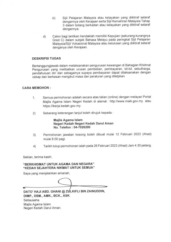 Iklan Jawatan Majlis Agama Islama Negeri Kedah Darul Aman
