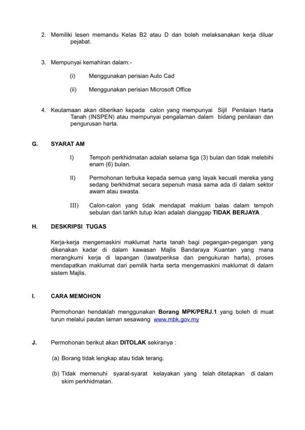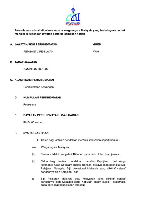 Iklan Jawatan Majlis Bandaraya Kuantan
