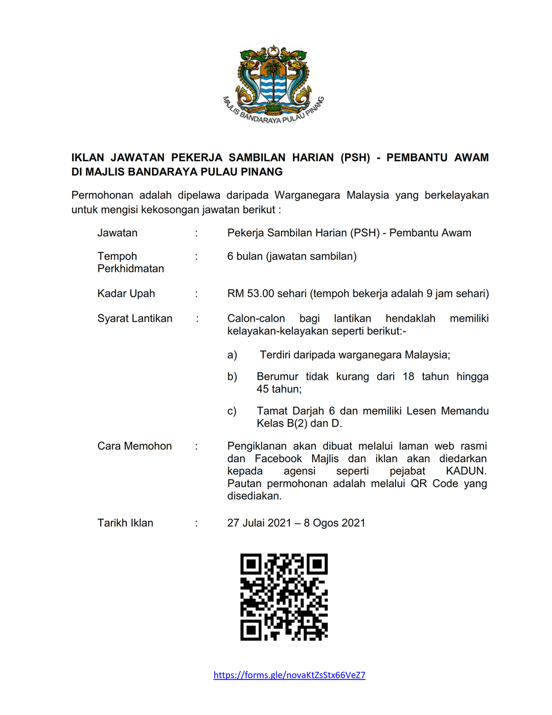 Iklan Jawatan Majlis Bandaraya Pulau Pinang